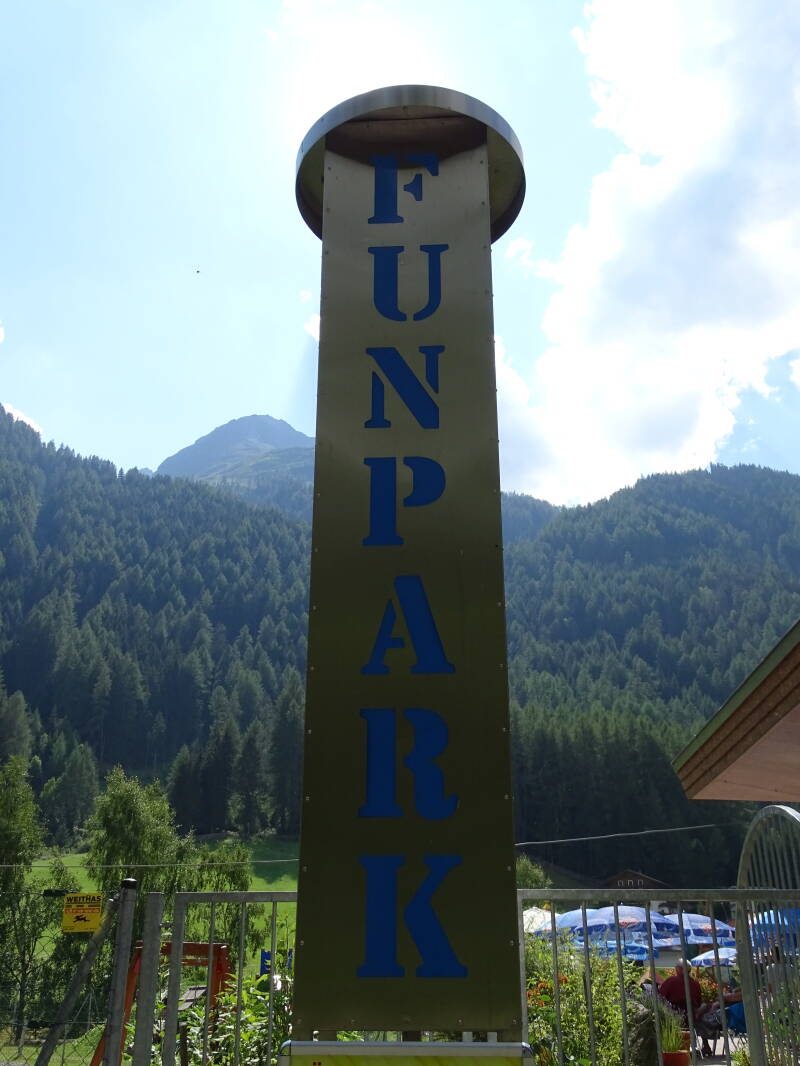 Hierna nemen we de kabelbaan terug naar beneden. Op weg naar Solden stoppen we in Huben, een deelgemeente van Längenfeld. Daar bezoeken we het lokale 'Funpark' (gratis met onze Oetztal Card), maar het park is nogal gericht op 14-16 jarigen ….