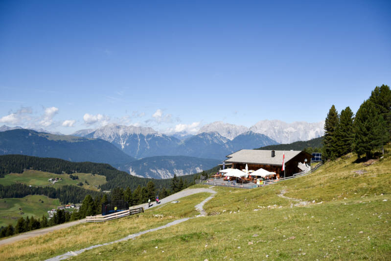 Maar … eerst een stukje wandelen en dàn spelen is een les die Ilona en Bjorn ondertussen reeds geleerd hebben … dus gaan we eerst op pad om drie almen te bezoeken en zo punten te scoren voor onze 'Wandernadel'. We beginnen met de 'Bielefelder Hütte', die we na een best wel steile klim van 25 minuten bereiken. Hier hebben we een mooi zicht op het begin van het 'Oetztal' en de kalkbergen van het 'Oberinntal' en 'Imst'.