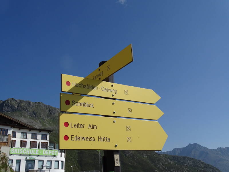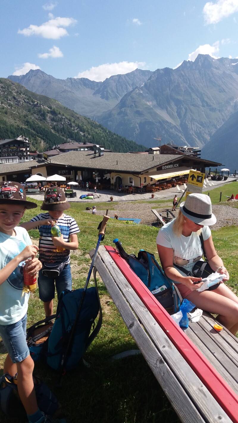 Het blijft prachtig weer tijdens onze vakantie. Vandaag gaan we tevoet van ons appartement naar de tweede kabelbaan in Solden, namelijk de 'Giggijochbahn'.