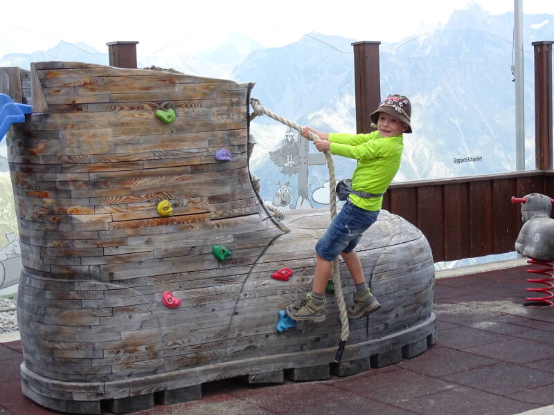 Overweldigd door al dit moois beklimmen Tristan en Odin een 'reuzenschoen' nabij de 'Rotkogelhütte'.