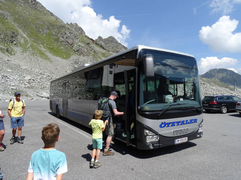 We gebruiken nog maar eens onze 'Ötztal Premium Card' en nemen de gletscherbus om de tolweg 'GletscherstraBe' gratis op te rijden. Voor Ilona ook eens leuk om niet met de auto te moeten rijden en van het landschap te kunnen genieten.