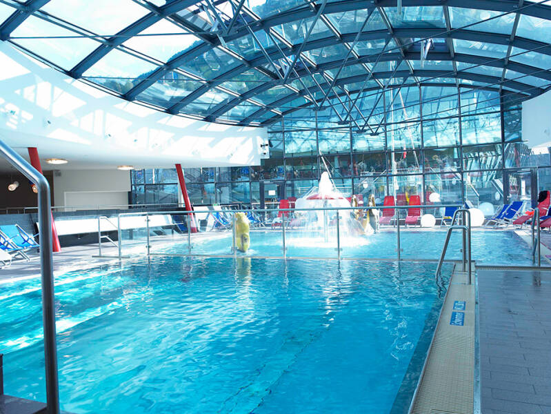 De 'Aquadome' is heel mooi, en is eigenlijk ook een kuuroord. Er is een binnenzwembad, buitenzwembad, drie grote 'zwembadschalen' met verwarmd water/zout water/kruidenwater, een waterversnelling, een kindergedeelte, ligweide, …