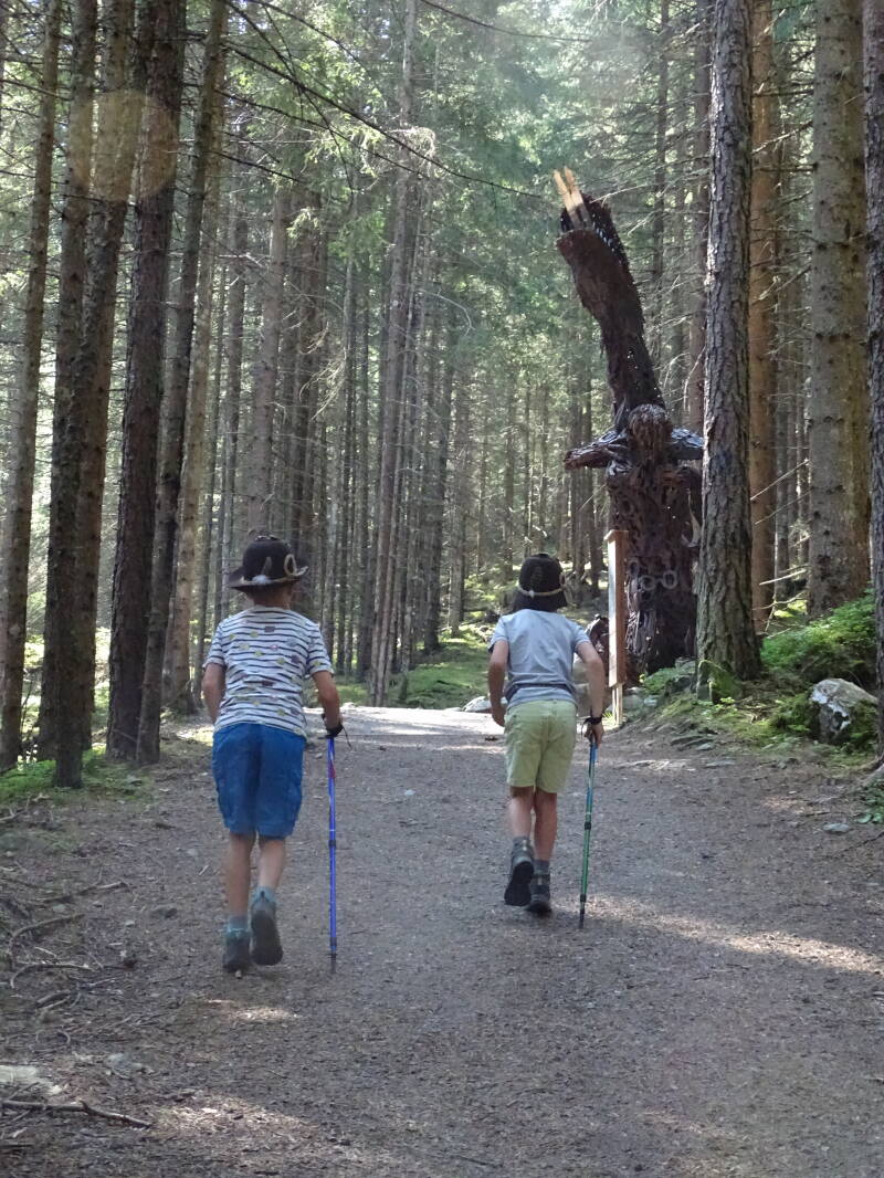 Alhoewel we nog kunnen verderwandelen in het 'Pollestal' naar de 'Pollesalm', zal dit niet voor vandaag zijn. We hebben nog een namiddagactiviteit, dus keren we via dezelfde weg terug. Onderweg bewonderen we nog eens alle beelden.