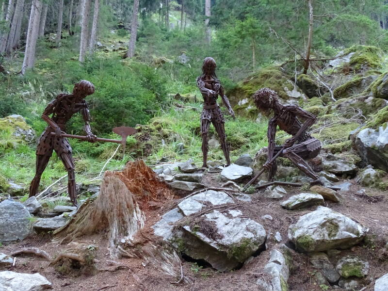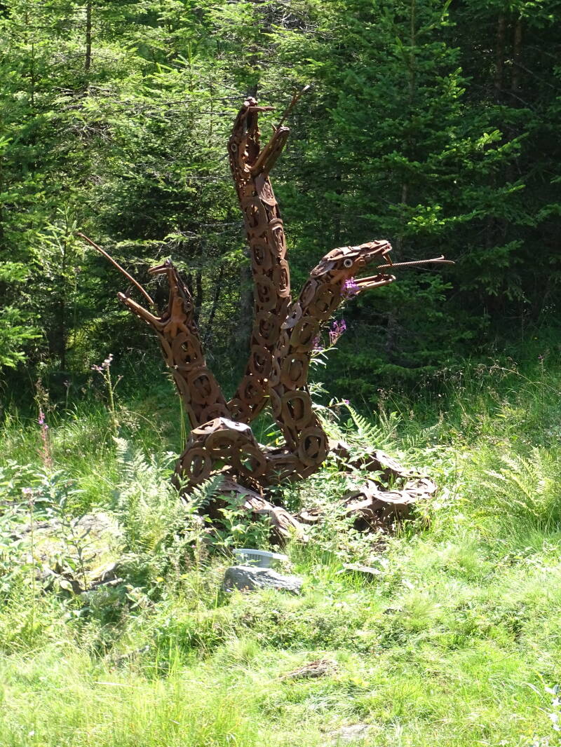 Het gaat goed omhoog ! We komen tal van figuren tegen die uit ijzer zijn gesmeed (door een lokale kunstenaar), die telkens het voorwerp zijn van een lokale legende. Alles is in het Duits, maar Bjorn is taalgewijs van vele markten thuis ...