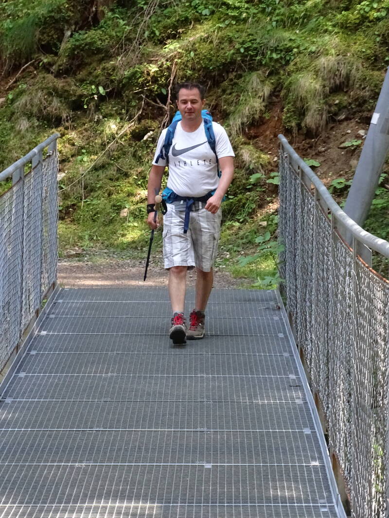 Iets verder moeten we zelfs een kleine hangbrug over !