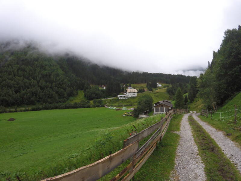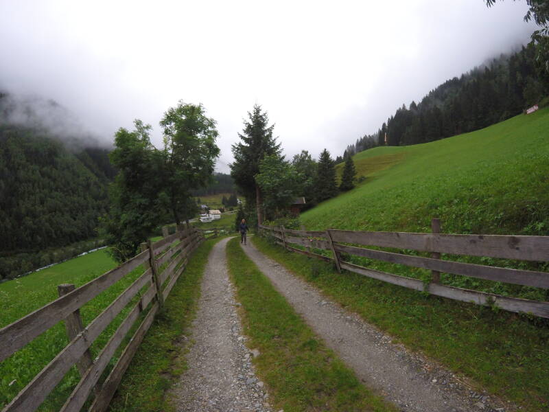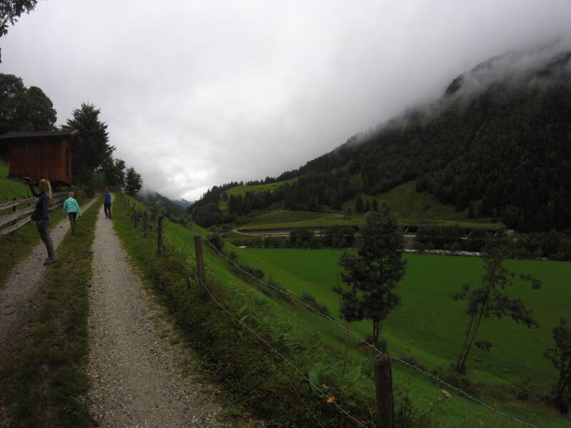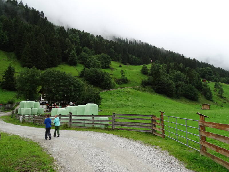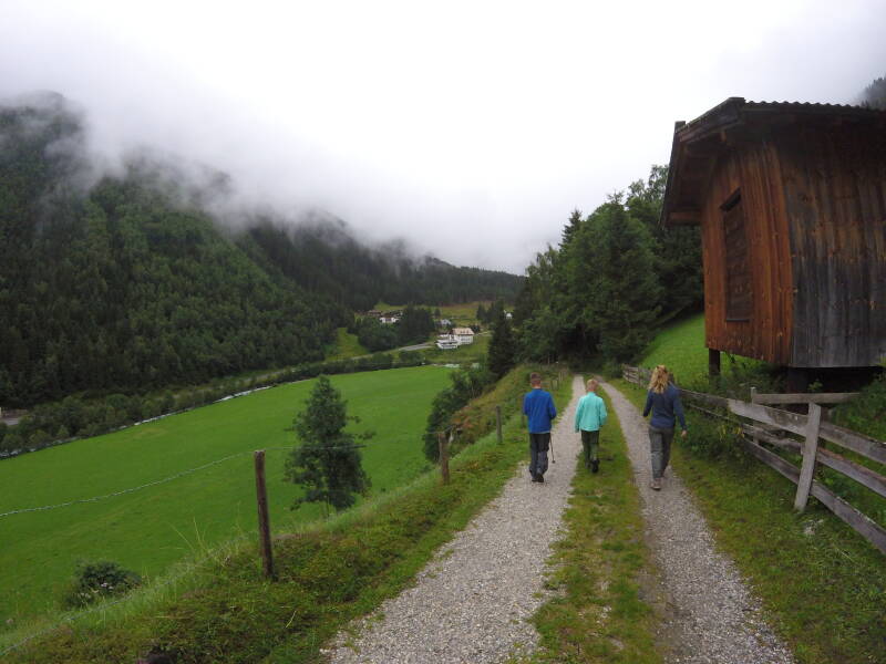 We maken een kleine wandeling naar de Oberhausalm die nabij het gehucht Ranalt ligt, het laatste 'dorpje' voor de Grawa Waterval. We parkeren onze auto, en stappen naar de Alm.