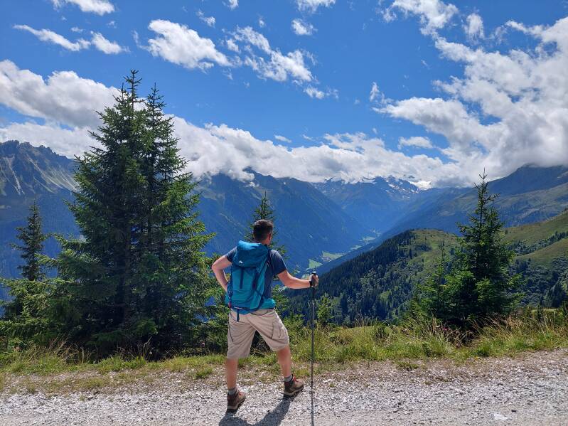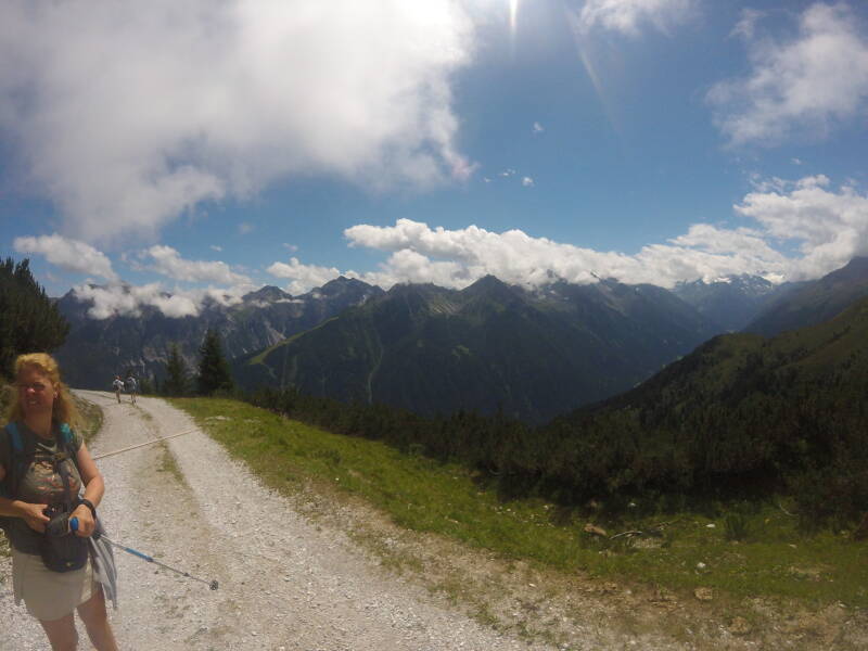We blijven verder omlaag stappen, temidden de bergen van het Stubaital.