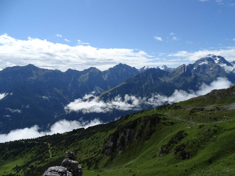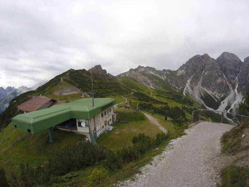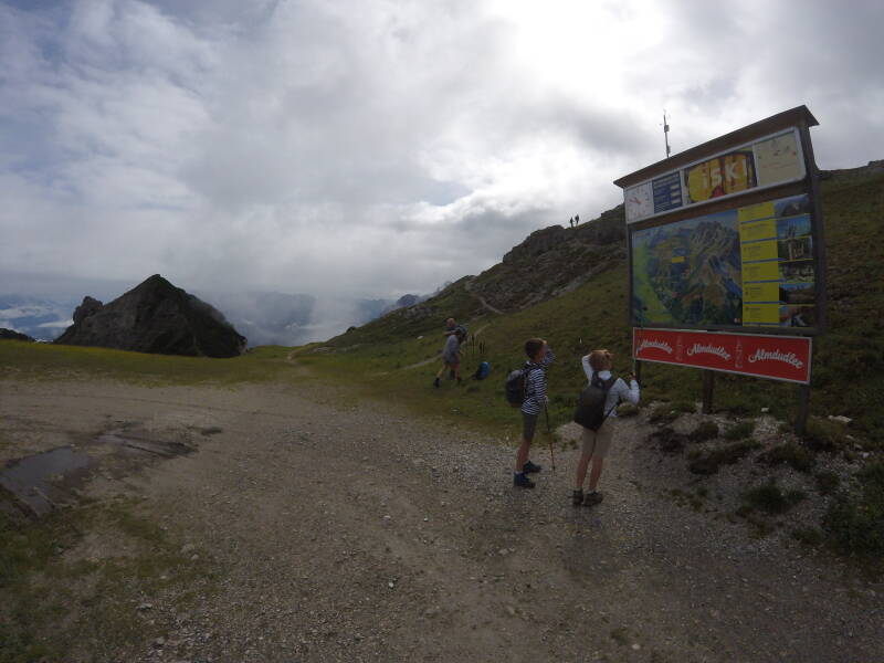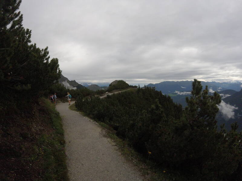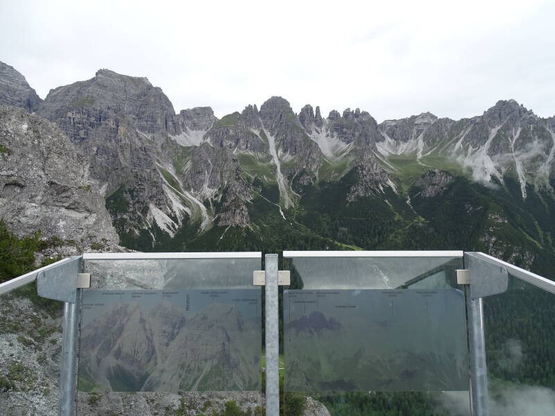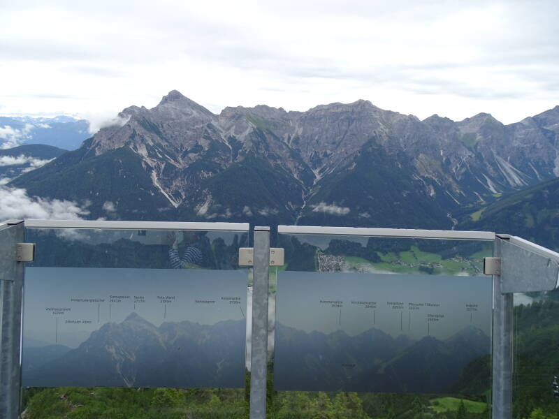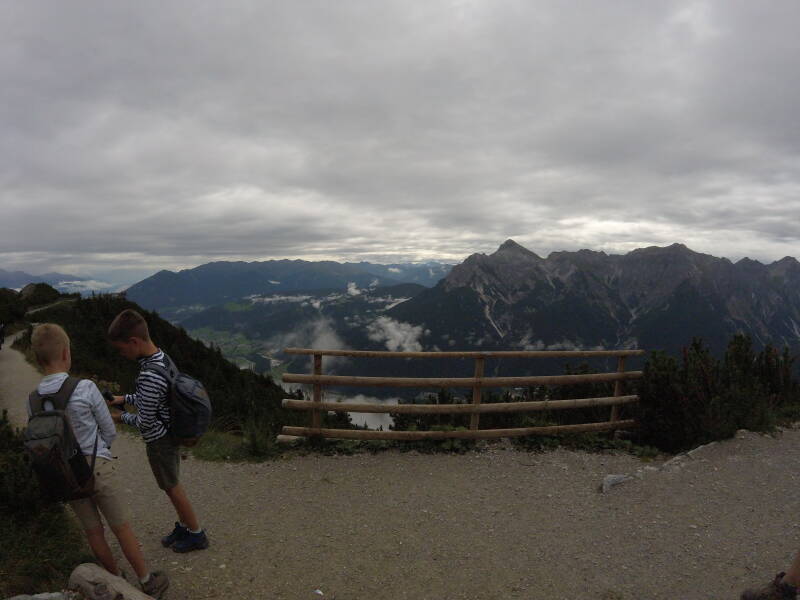 Normaal gezien heb je hier een prachtig zicht over het Stubaital. Ook staan er infoborden en 'kijkers' over de 'Seven Summits of Stubai', die hier alle zeven te zien zijn. Helaas gooit de voortdurend optrekkende mist opnieuw roet in het eten, zodat niet alle bergen zichtbaar zijn.