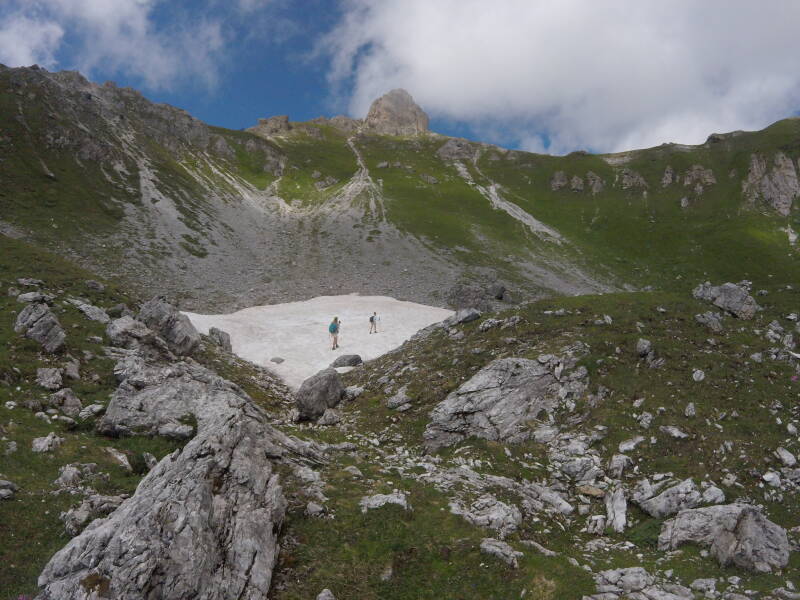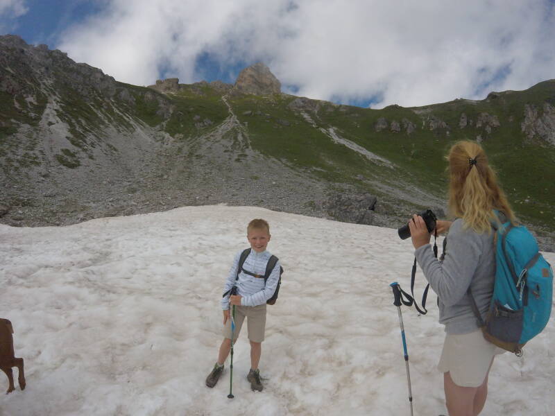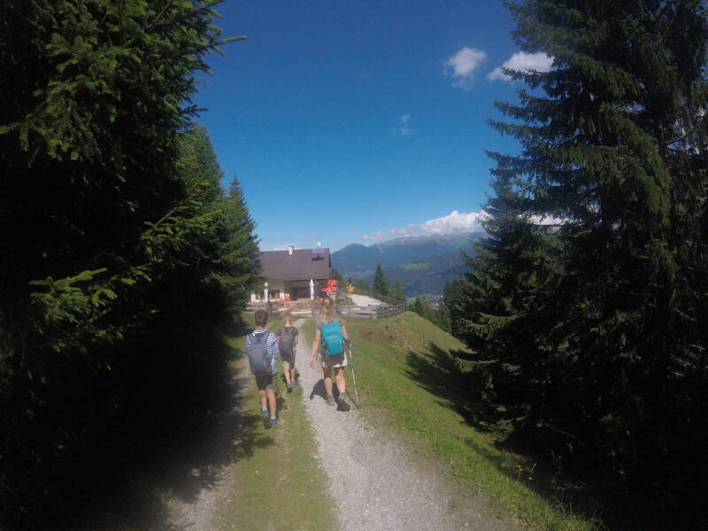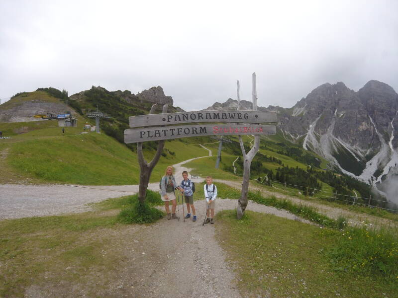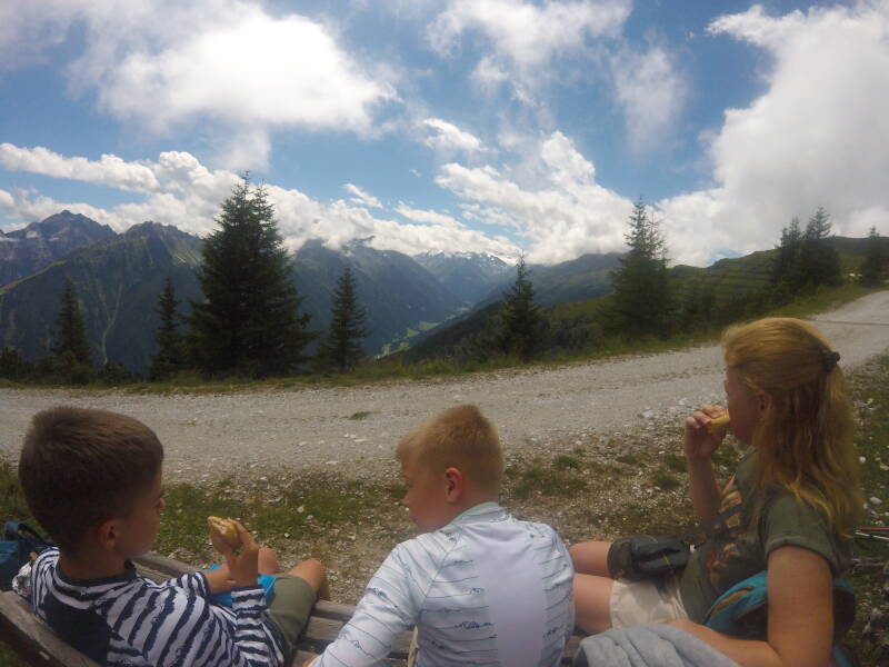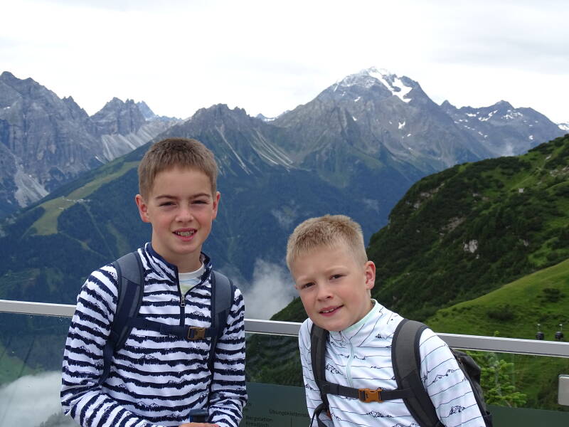Hierna nemen we opnieuw de 'Scheibenweg'. Mama en papa dragen de rugzakken, en Odin en Tristan gaan als gekken tekeer (vermoeidheid?) ...