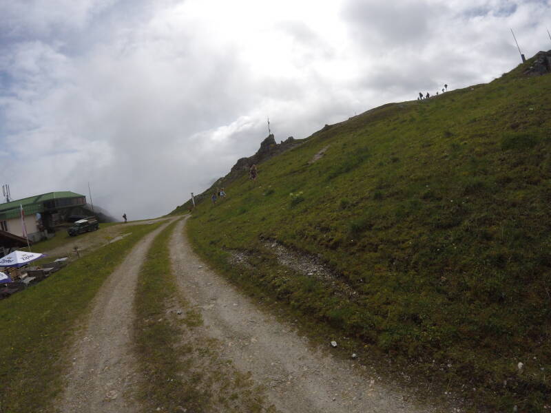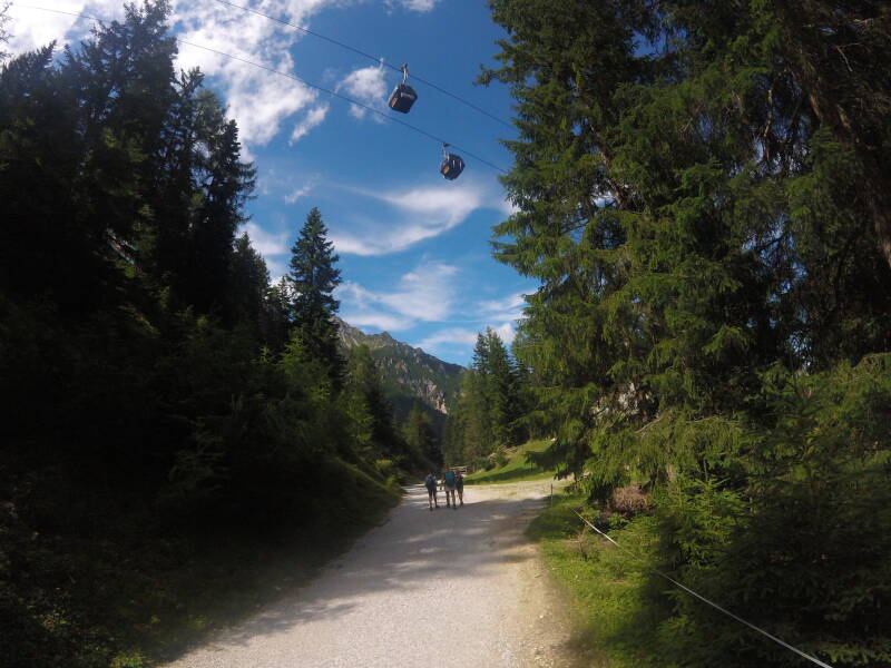 Hierna keren we terug naar het bergstation en beginnen we aan de wandeling, eerst naar de Senjochhütte.