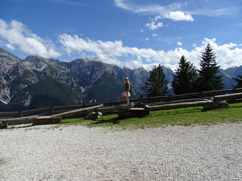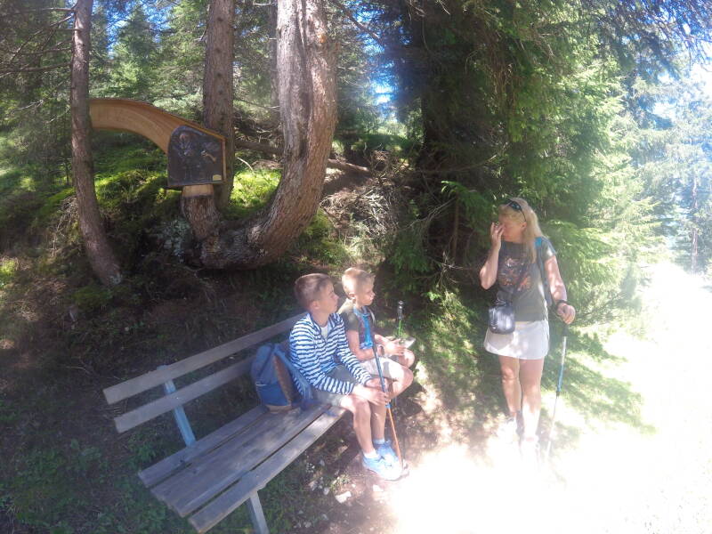 Na nog een stempel te hebben gehaald, is het tijd voor bijna het laatste stuk. In plaats van onmiddellijk naar het middenstation te wandelen, gaan we eerst een stukje omhoog richting de 'Panoramasee' en de 'Scheibenweg'. Dit laatste natuurlijk als lokmiddel voor de kinderen, die hierdoor hun vermoeidheid vergeten ...