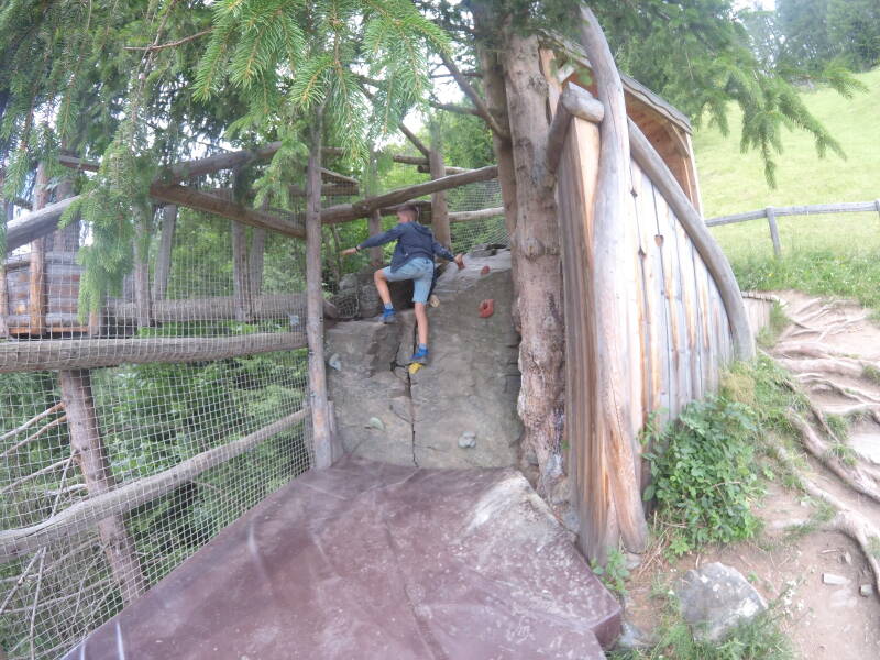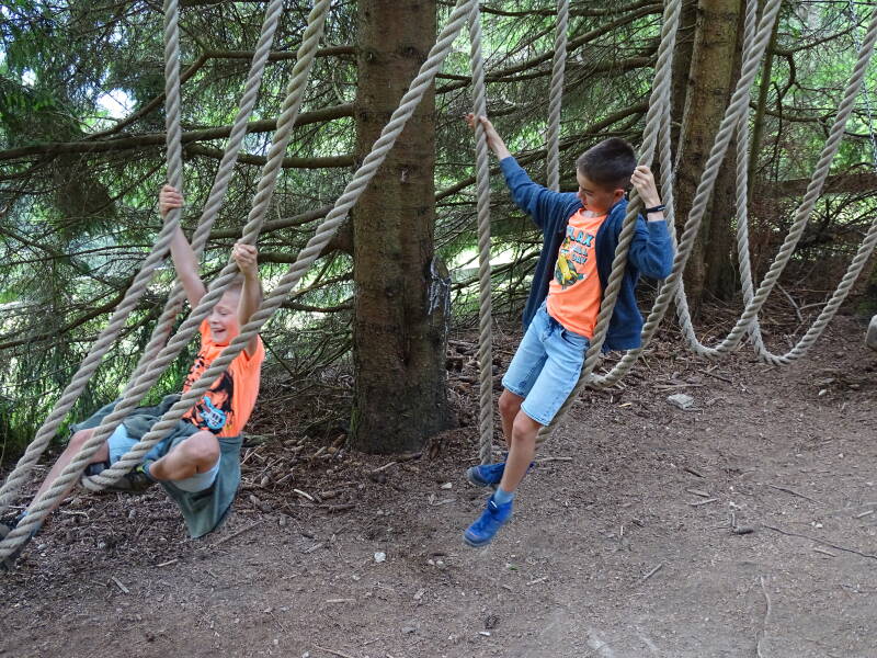 De kinderen bieden ook hun 'Baumhausweg'-stempelkaartje aan, en krijgen snoepjes als beloning. Hierna keren we terug omlaag.