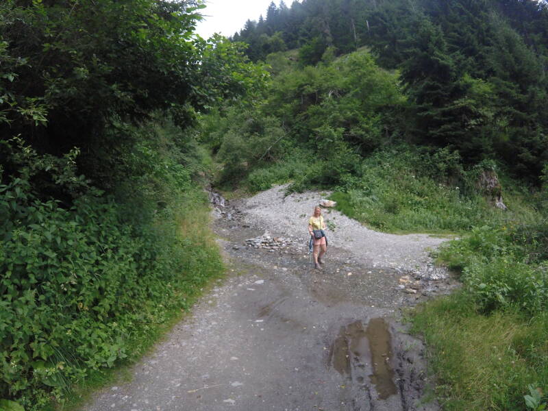 Het pad is een beetje saai, maar goed, in een dik half uur zijn we bij het dalstation.