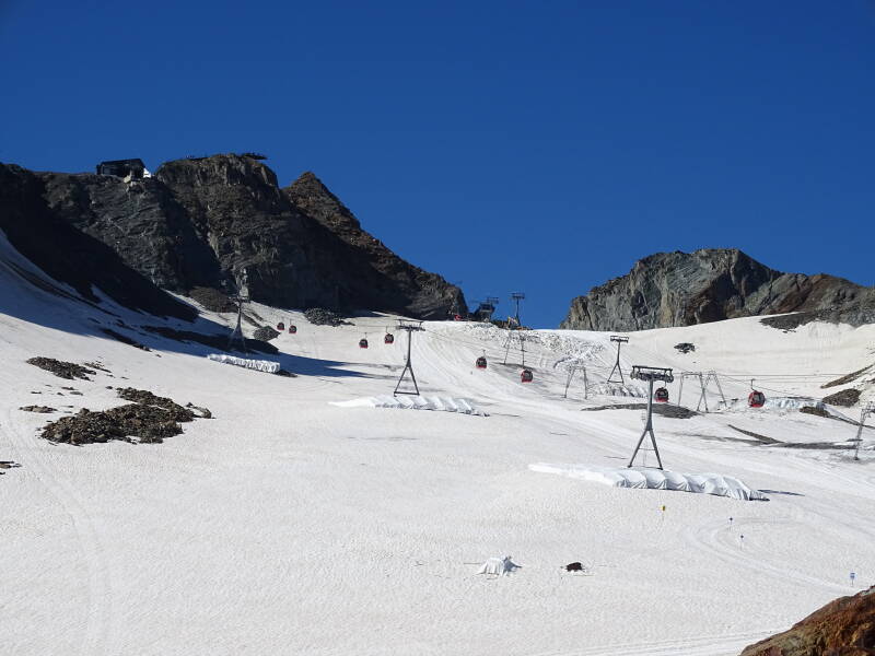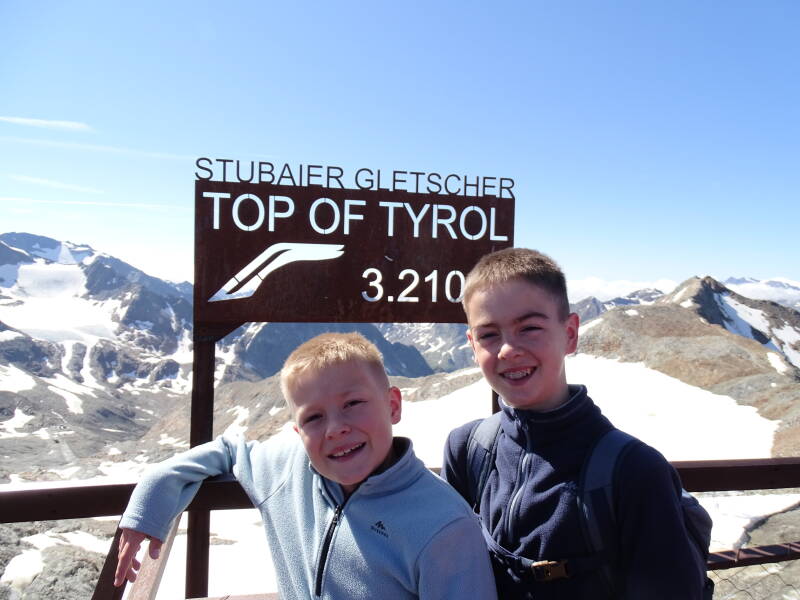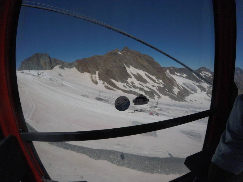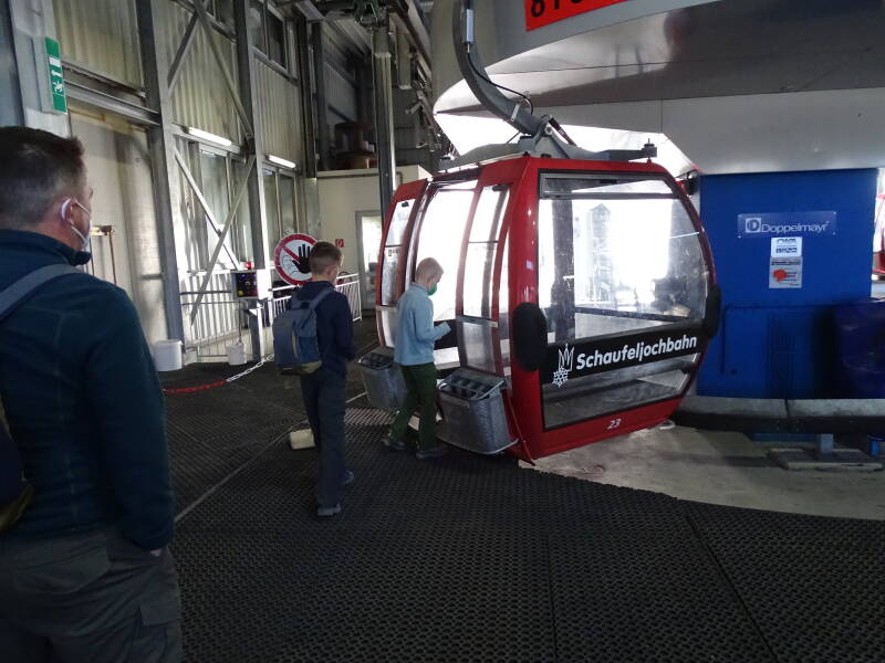Ondertussen is het op en rond bergstation 'Eisgrat' al flink drukker geworden. We nemen nu de laatste gondel naar het uitkijkpunt 'Top of Tyrol' !