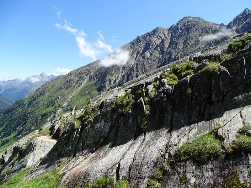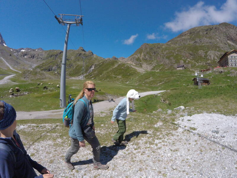 Waarna we beslissen om niet met 'het bakje' naar beneden te gaan, maar dit te voet te doen. Er staat ook een plakaat met 'Murmeltiersteig', wat Ilona doet vermoeden dat ze haar dierenvrienden gaat zien ...