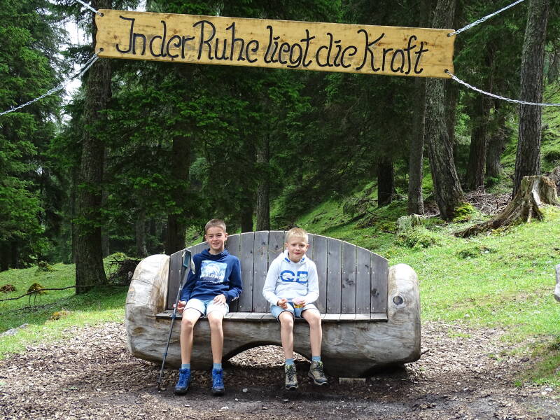 We kunnen de 'forstweg' volgen, maar besluiten om het bos in te gaan en de 'Sinnen Erlebnisweg' wandelen.