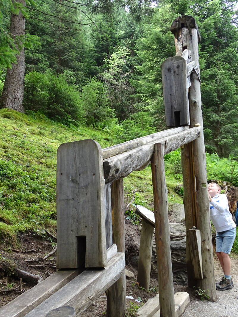Hier krijgen Tristan en Odin plots een boost, want hier begint de 'Scheibenweg' ! Hun gehuurde houten schijven kunnen ze in een parcours naar beneden laten rollen !