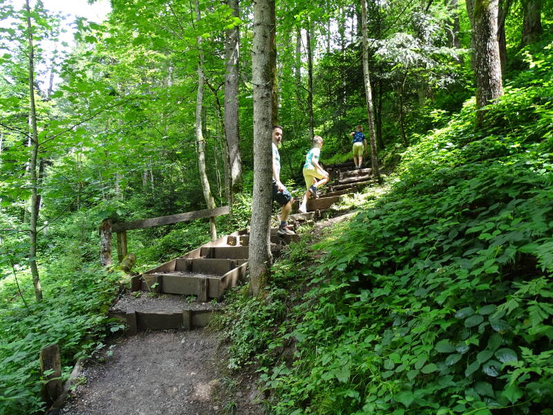 Tussen al het geweld van de beleveniswerelden in de buurt is de 'Rehbachklamm' een ongekende wandeling die je niet veel ziet passeren op sociale media of vindt op internetsites. Langs de brug die naar de 'Hintersteinersee' leidt (zie onze wandeling van vorig jaar) sla je rechtsaf, en wandel je langs een riviertje (vermoedelijk de 'Rehbach') met her en der bruggetjes tussen de bomen. Op het einde kom je in een soort 'klammgedeelte', vanwaaruit men ook nog naar de 'HinterschieBingalm' kan wandelen.