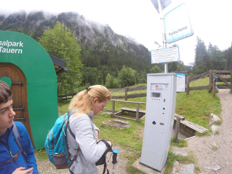 We rijden naar het gehucht Sulzau, waar we de weg nemen naar de parking 'Hopffeldboden'. Daar kan tegen betaling geparkeerd worden om de wandeling aan te vatten.
