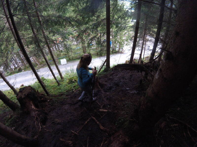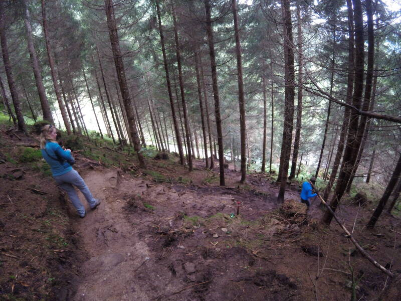 Wat volgt is een steile, avontuurlijke klim door het bos via een echt 'modderpad' ...