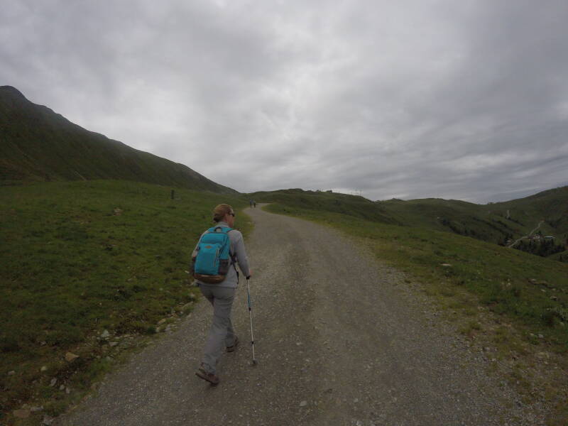 En daarna wandelen we terug naar het bergstation van de kabelbaan via een brede 'forstweg'.