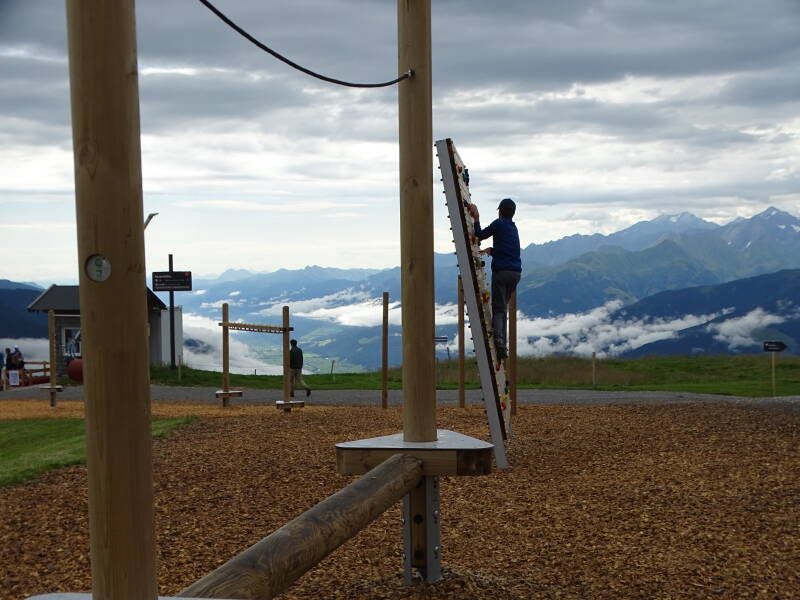 We komen aan bij het bergstation 'Resterhohe', dat inkijk geeft op enerzijds de 'Hohe Tauern' en anderzijds het 'Kitzbüheldal'.