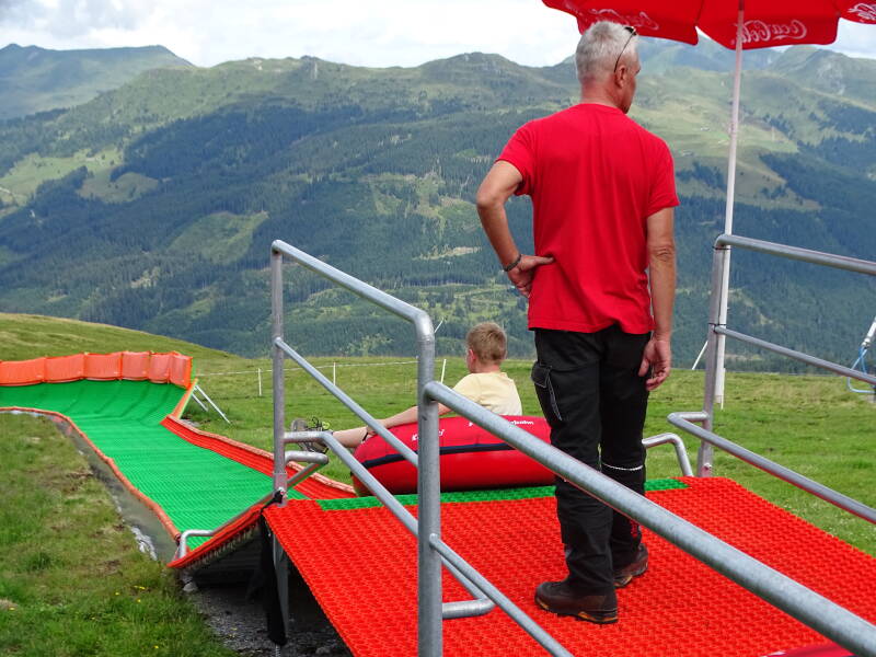 We rijden naar het dorpje Hollersbach in Pinzgau, waar de 'Panoramabahn' ligt. Deze gaat naar boven tot aan het middenstation dat eigenlijk op de 'Thurnpass' ligt, en dan nog een stukje hoger.