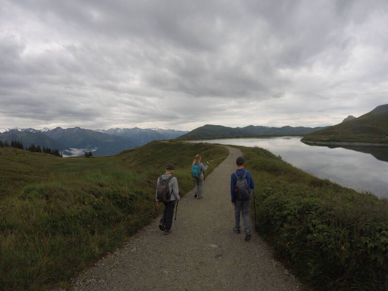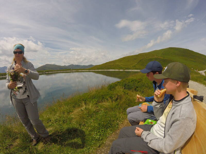 We lopen rond de speichersee waar we langs de kant van het 'Pinzgautal' een stukje omhoog wandelen richting de 'PanoramaAlm'.