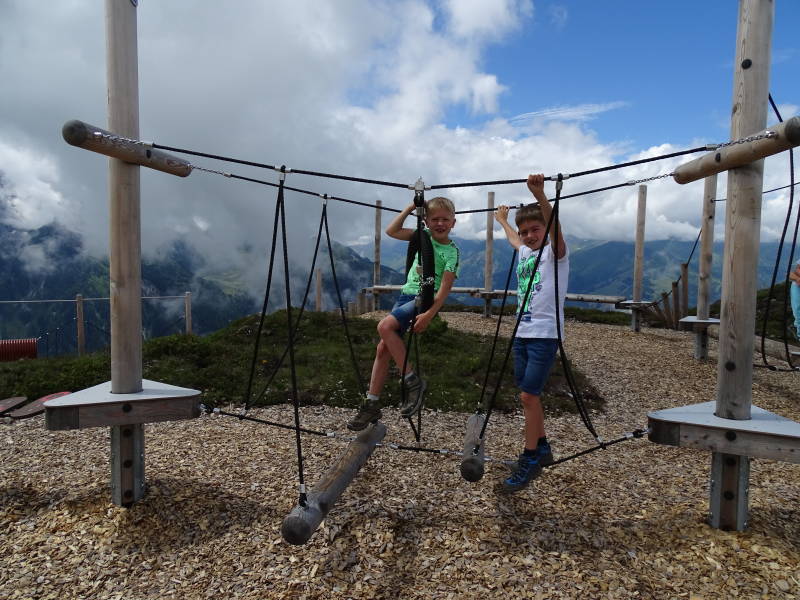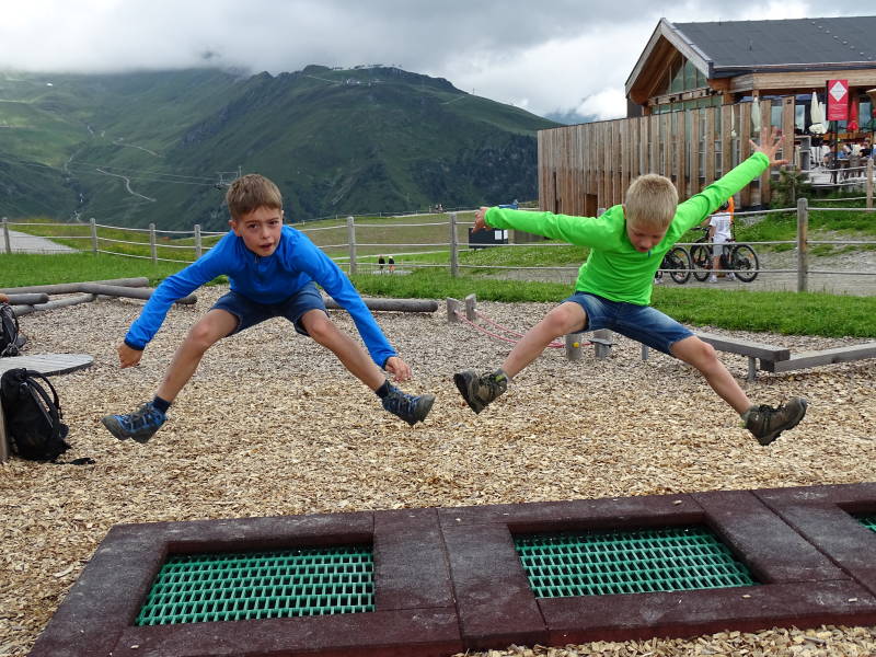 Er is echter een speeltuin of 'funpark' voorzien nabij de kabelbaan, en Tristan en Odin gaan eerst wat spelen …