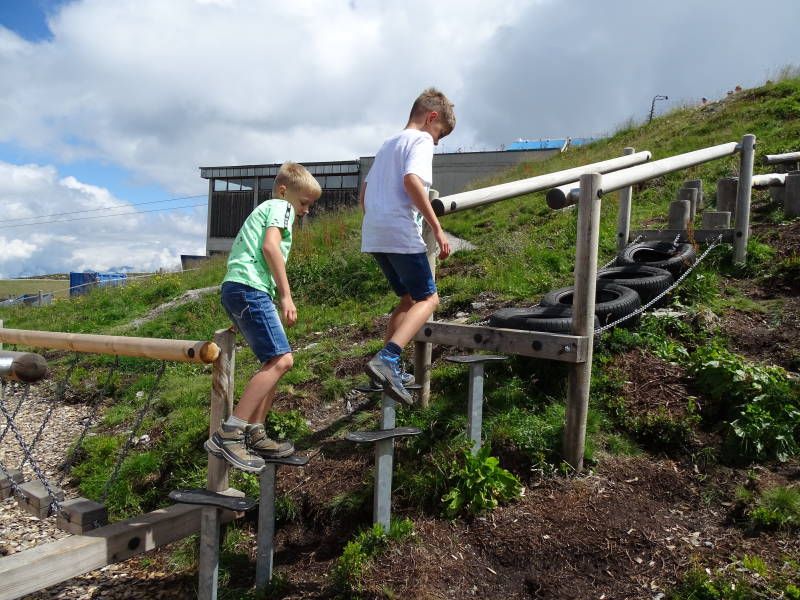 We houden het bij het balanceerparcours, want voor de andere zaken (grote bal op het water, mountainbike, crossbrommertjes, … ) moet er bijbetaald worden.