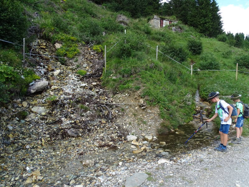 De bewolking is ondertussen wat weggetrokken, zodat we onze truien kunnen uitdoen. Naast de alm 'Penkentenne' vatten we de terugocht naar het middelstation aan.
