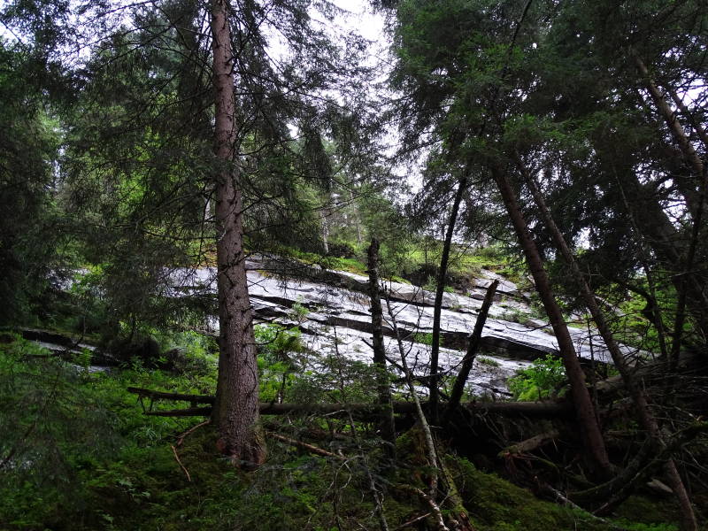 We lopen eerst gestadig langs een 'forstweg' omhoog ...