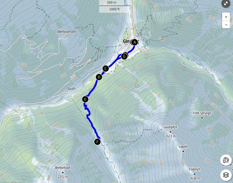We komen ook weer op de baan waar we richting 'Ginzling' lopen.